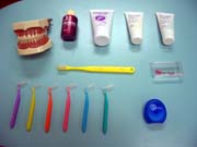 当院では、左の模型等を用いて、ブラッシング指導を行います。