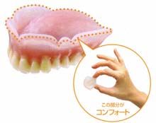 コンフォートは、入れ歯の裏面を生体シリコンというクッションで覆う、全く新しい入れ歯の技術です。