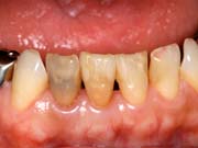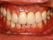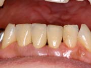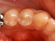 歯内の虫歯をきれいに除去し、歯の周りを削って、金属の裏打ちのあるセラミックの歯を被せました。