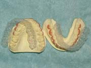 患者様ごとに作ったトレー(写真左)に薬剤を入れて、1日2〜3時間歯に装着して頂くだけです。