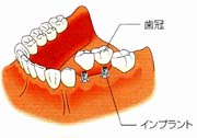 無くなった歯のアゴの骨にインプラント(人工歯根)を埋め込む治療法です。