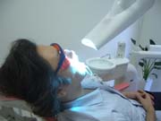 この機器は歯の水分を脱水させ、熱が出ない光で歯を白くします。