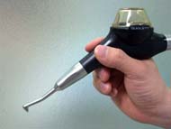 研磨剤を吹き付けて、茶渋やタバコのヤニなどの歯の着色を除去する際に使用します。