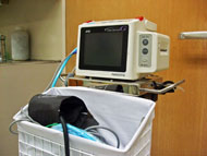 治療中の血圧はもちろん、心電図・心拍数・脈拍数・動脈血酸素飽和度などを管理しながら治療ができます。