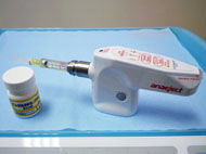 また、麻酔時の押されるような圧力痛を軽減する為に一定の圧力でゆっくりと麻酔処置が可能な電動麻酔器を用いております。