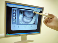 当院では細長いカメラで治療部位の画像を直接ご確認頂いております。